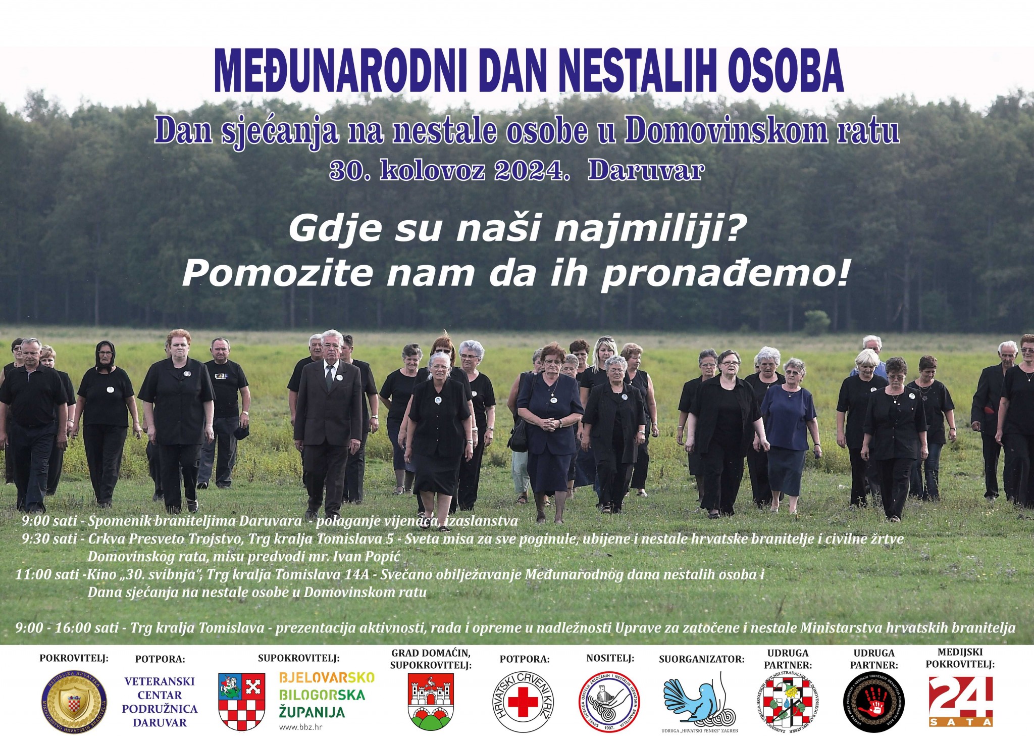 Obilježavanje Dana sjećanja na nestale osobe u Domovinskom ratu i Međunarodnog dana nestalih osoba 28. kolovoza 2024 suoznhb Plakat 2024 MDN Daruvar 2024.
